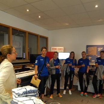Trier, Gottbillstr.: Am Freitag den 18.08.2017 waren die kleinen Miezen in unserem Unternehmen zu Gast. Nach einem Empfang in unserem Schauraum, ging es dann durch die Werkstatt hinauf in das umfunktionierte "Druckstudio". Hier gab es reichlich Auswahl am Frühstücksbuffet. Bei einer Dia-Show mit vielen schönen Photos der vergangenen Saison, haben sich die kleinen Miezen dann für das bevorstehende Turnier gestärkt. Es ist toll, dass ein so enger Kontakt zwischen Sponsoren und Team gepflegt wird. So lernt die Firma die Spielerinnen kennen und jede Spielerin weiß, wer hinter dem Logo auf dem Trikot steht...Wir danken ganz herzlich für das große Engagement der Mannschaft und des gesamten Teams und wünschen viel Erfolg für die neue Saison!